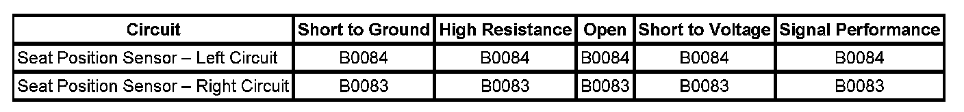 DTC B0083 and B0084 will set when one of the following conditions occur: