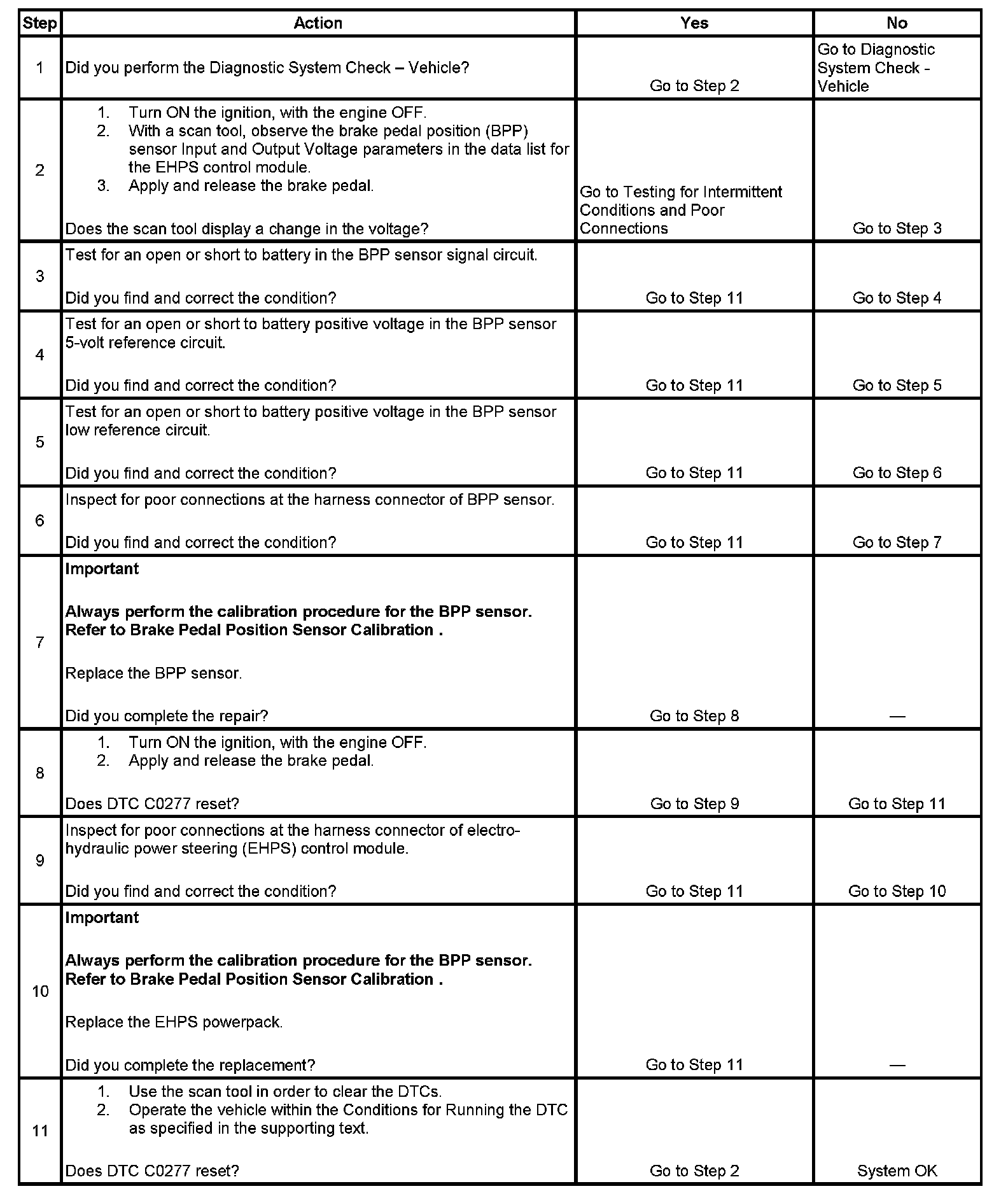 8. This step tests to see if DTC C0277 resets.