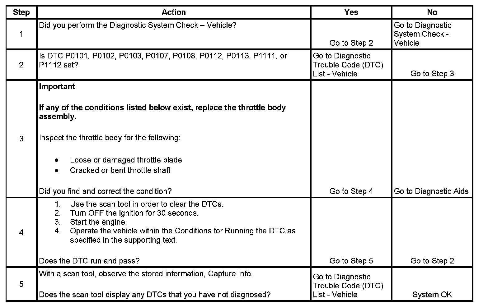 - Physically and visually inspect the throttle body assembly and correct any problems that you observe. Manually move the throttle blade from closed to wide open throttle (WOT). You should not need to use excess force. The throttle blade should move smoothly through the full range and then should independently return to a slightly open position.