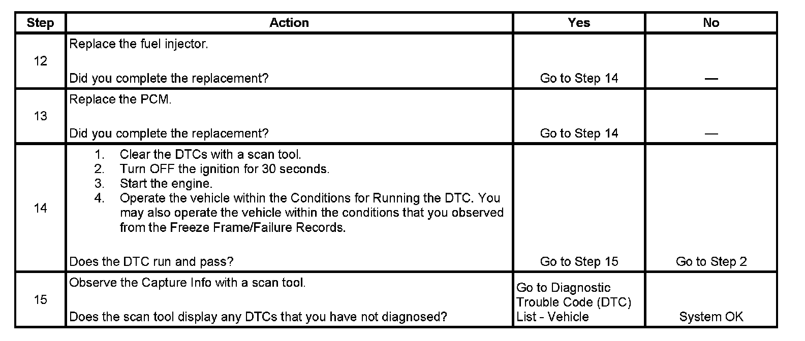 - A current DTC, Last Test Failed, clears when the diagnostic runs and passes.