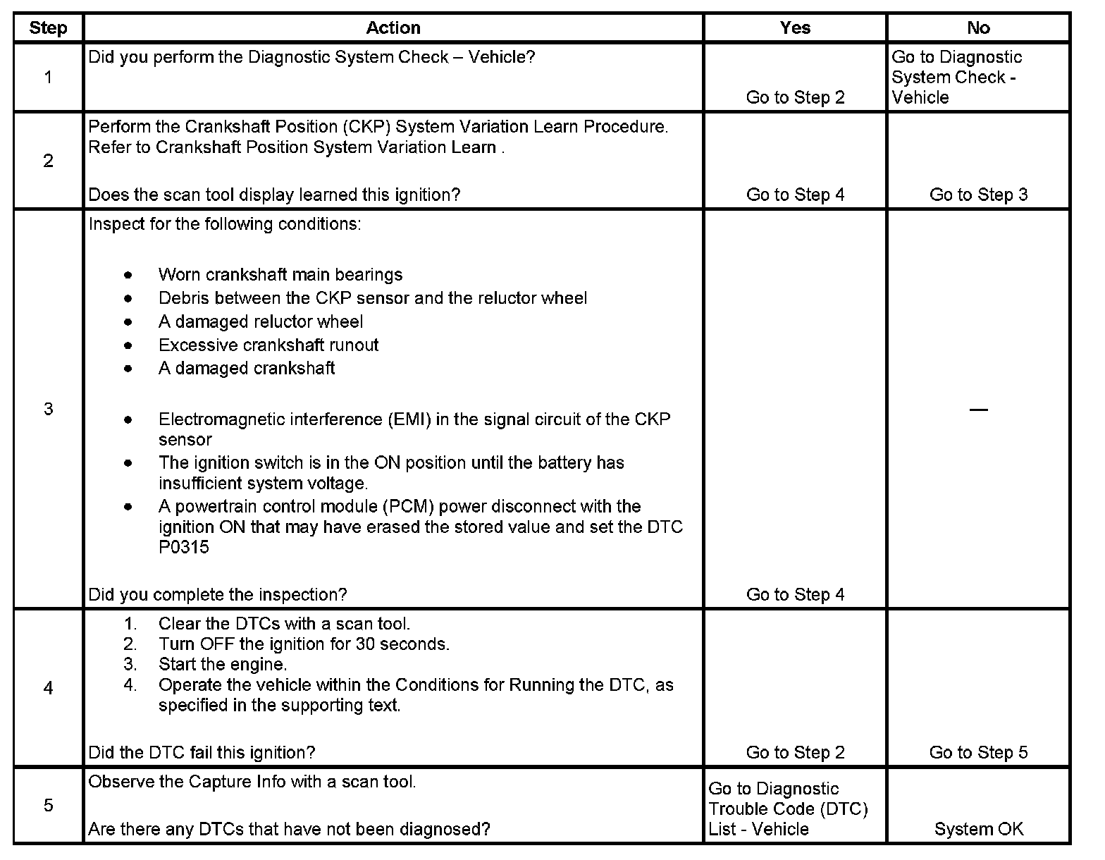 DTC P0315 Crankshaft Position (CKP) System Variation Not Learned