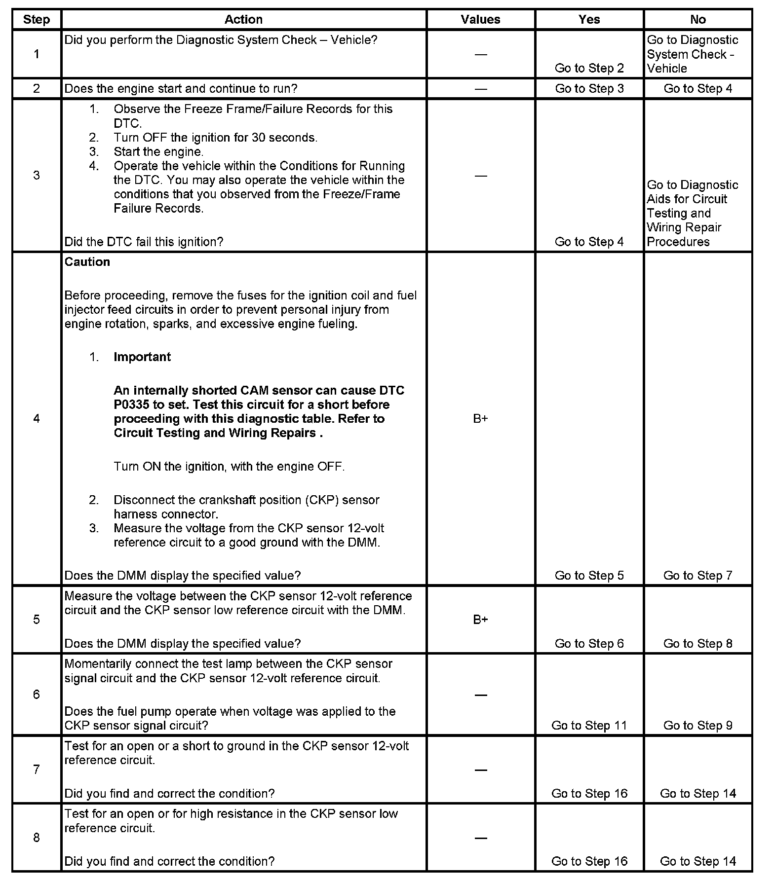 DTC P0335 Crankshaft Position (CKP) Sensor Circuit