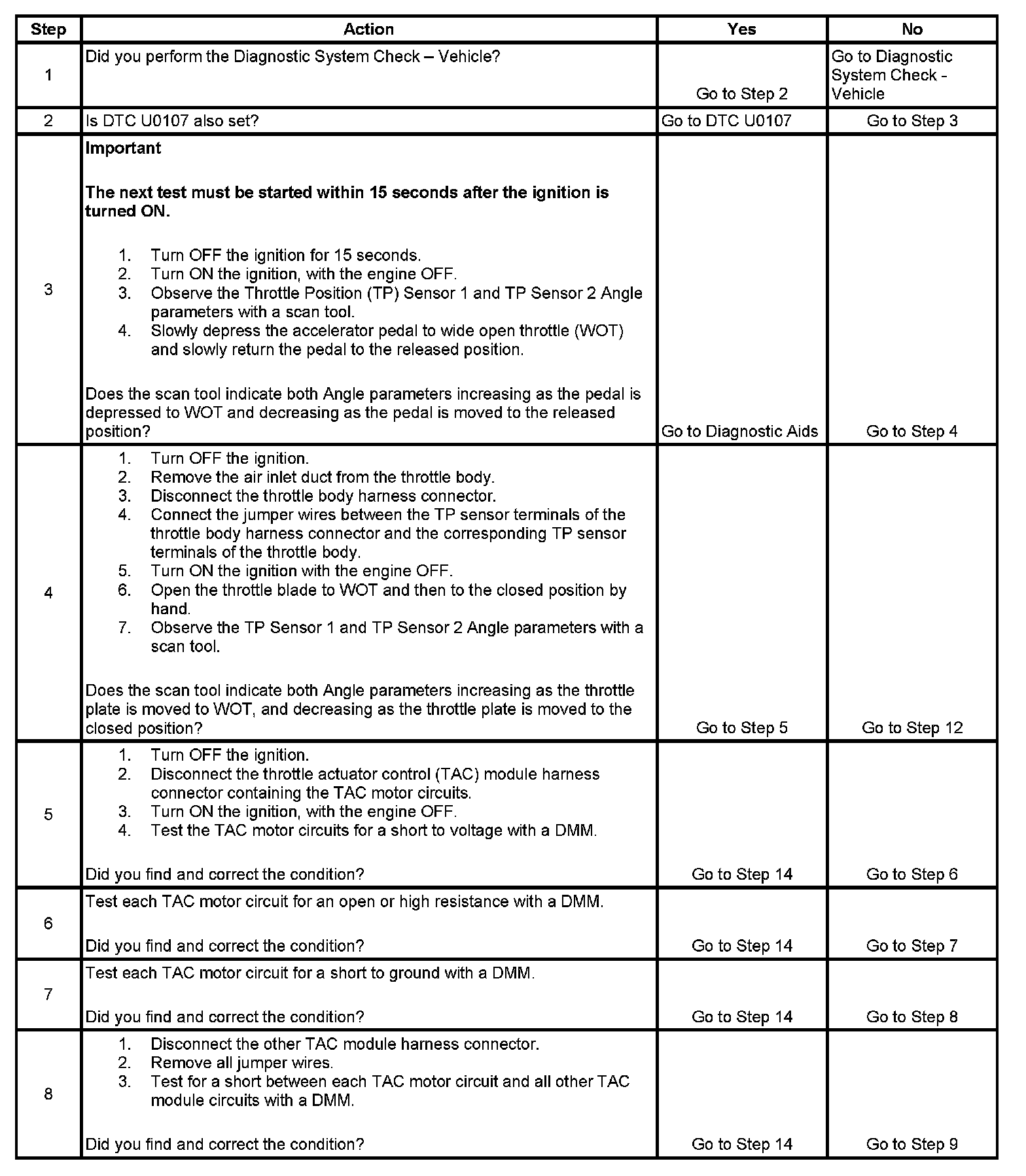 4. If the TP indicated angle does not follow the movement of the throttle blade, and no TP sensor DTCs are set, there is a mechanical condition with the throttle shaft or the TP sensor.