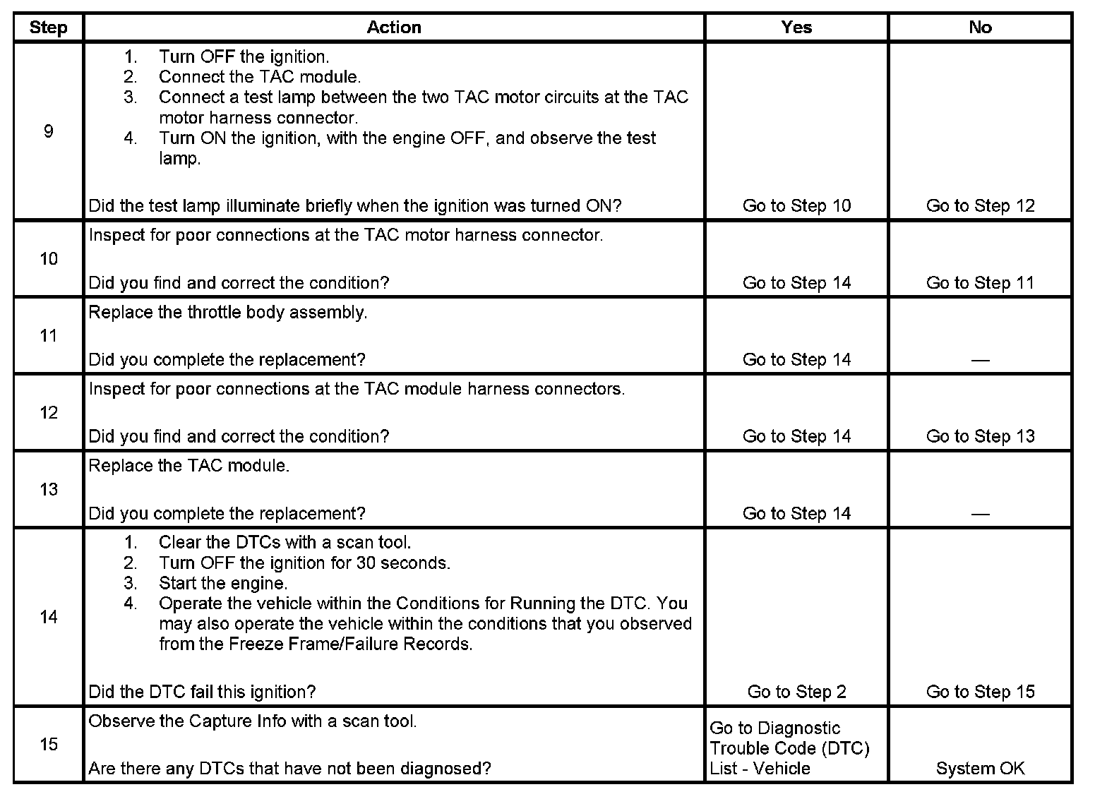 - When the TAC module detects a condition within the TAC System, more than one TAC System related DTC may set. This is due to the many redundant tests run continuously on this system. Locating and repairing an individual condition may correct more than one DTC. Disconnecting components during testing may set additional DTCs. Remember this if you review the stored information in Capture Info.