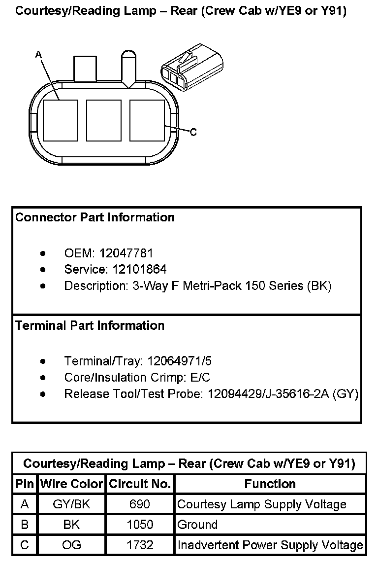 Courtesy/Reading Lamp - Rear (Crew Cab With RPO Code YE9 Or Y91):