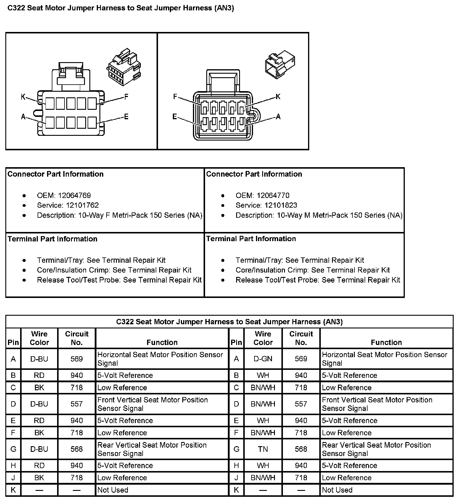 C322 Seat Motor Jumper Harness To Seat Jumper Harness (With RPO Code AN3):