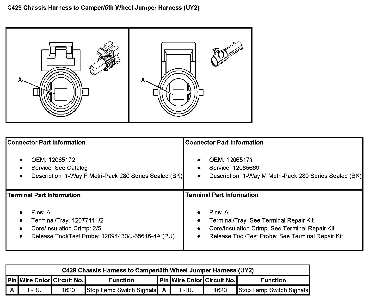 C429 Chassis Harness To Camper/5th Wheel Jumper Harness (With RPO Code UY2):