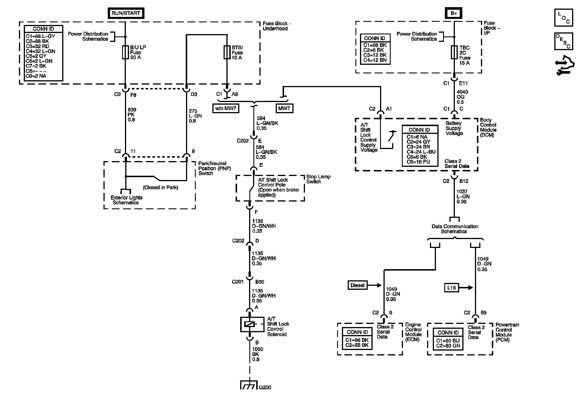 The locations for the Connectors, Grounds, Splices, and Grommets shown within these diagrams can be found via their numbers at Vehicle Locations.