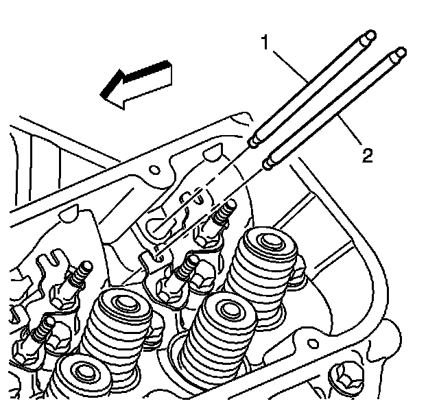 3. Important: The exhaust valve pushrods (2) are longer than the intake valve pushrods (1).