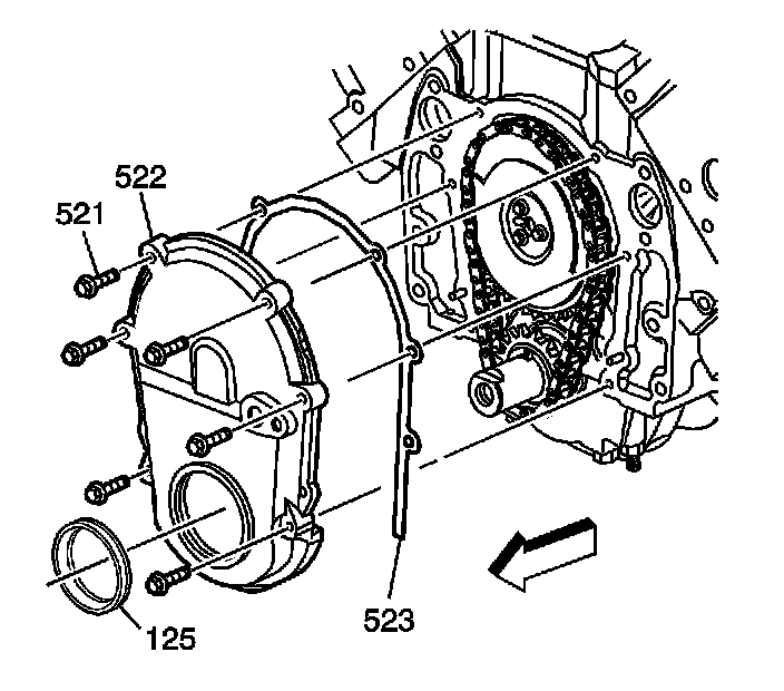 5. Remove the engine front cover bolts (521).