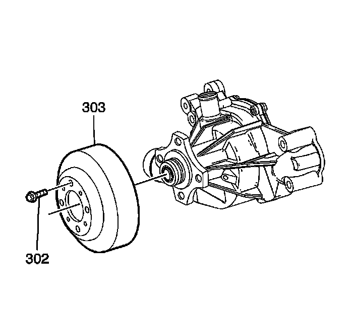 3. Install the water pump pulley (303) and bolts (302).