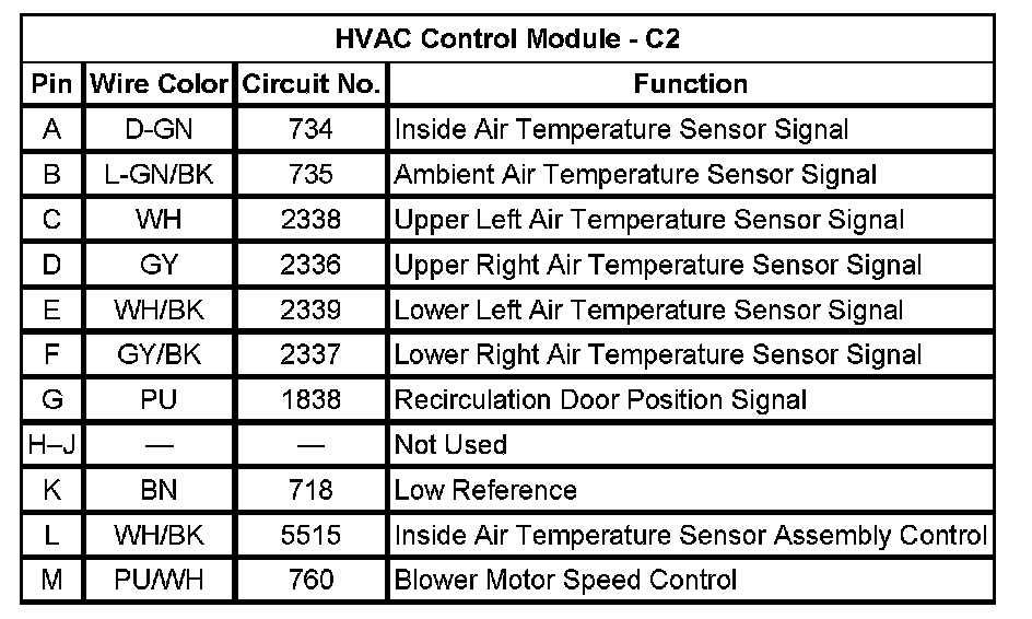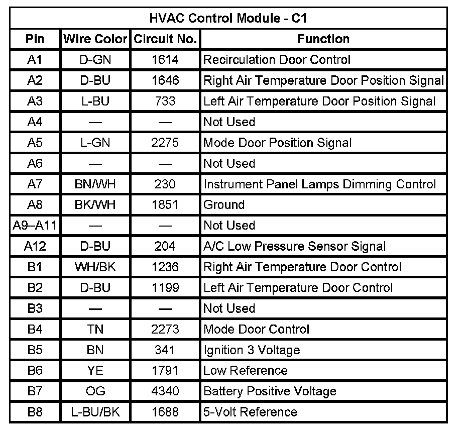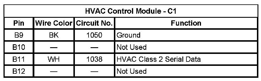 HVAC Control Module - C1 (Pin B9 To B12):