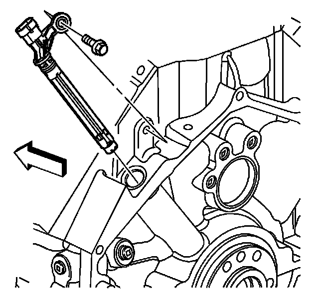 IMPORTANT: The CKP sensor bolt has adhesive applied to the threads. The adhesive may have come off during removal of the bolt. Ensure that the bolt hole is clean of any debris before installing the reinstalling bolt.