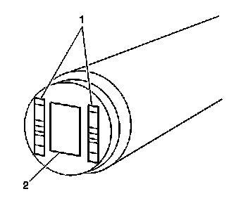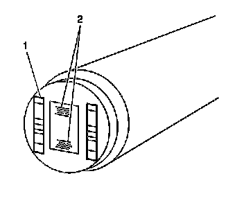 13. Normal CKP sensor wear will be shown on the wear strips (1) and no wear will be shown on the sensor sensing element (2).