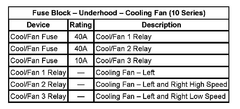 Fuse Block - Underhood - Cooling Fan (10 Series):