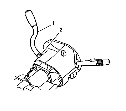 2. Roll back the seal on the shift lever (1) until the TORX(r) head shift lever screw (2) is exposed.