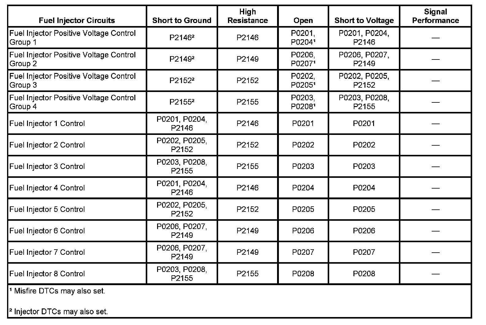 DTC P0201, P0202, P0203, P0204, P0205, P0206, P0207, or P0208