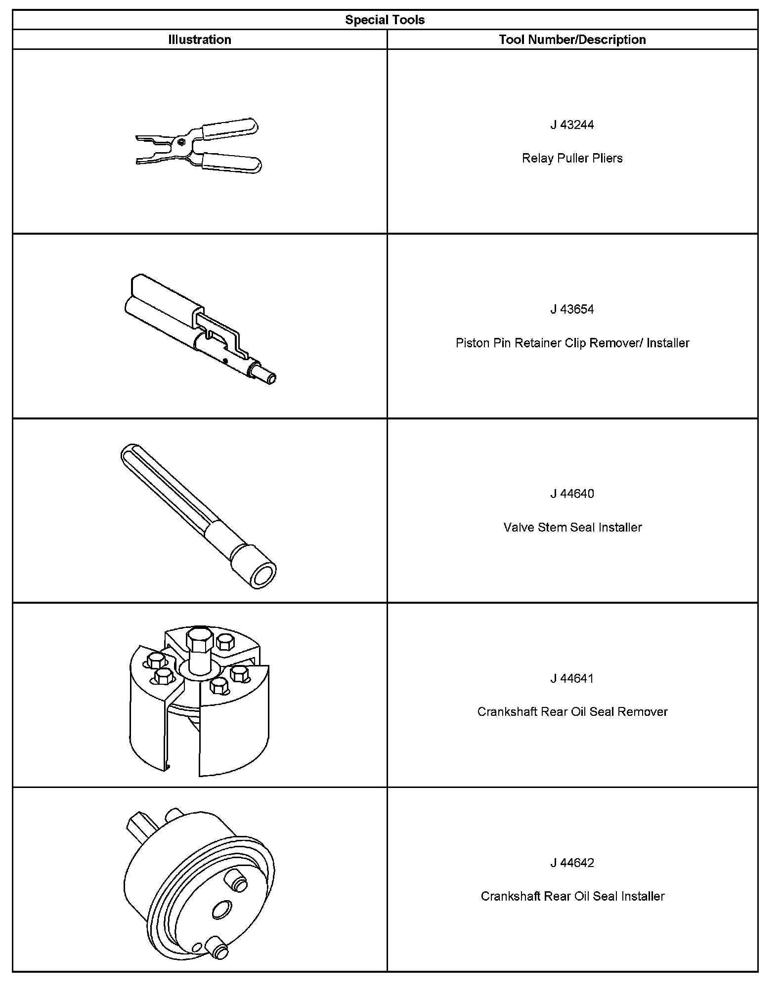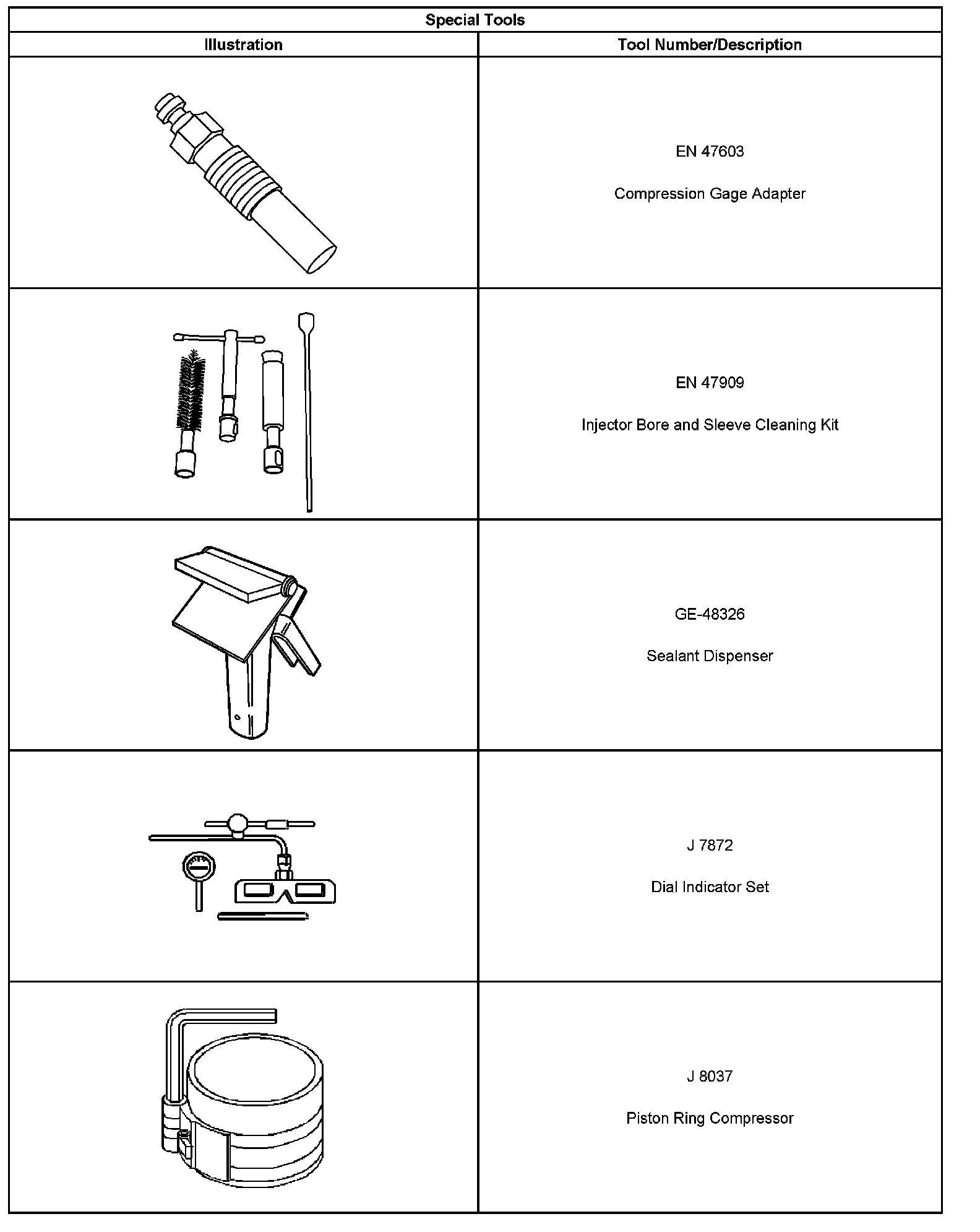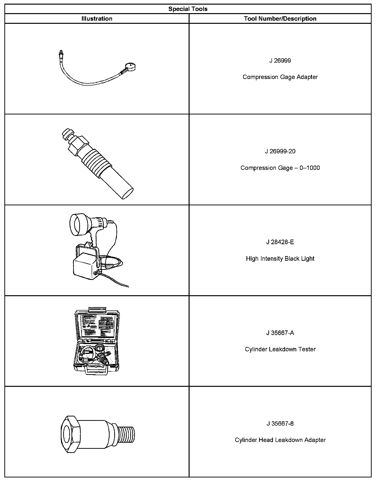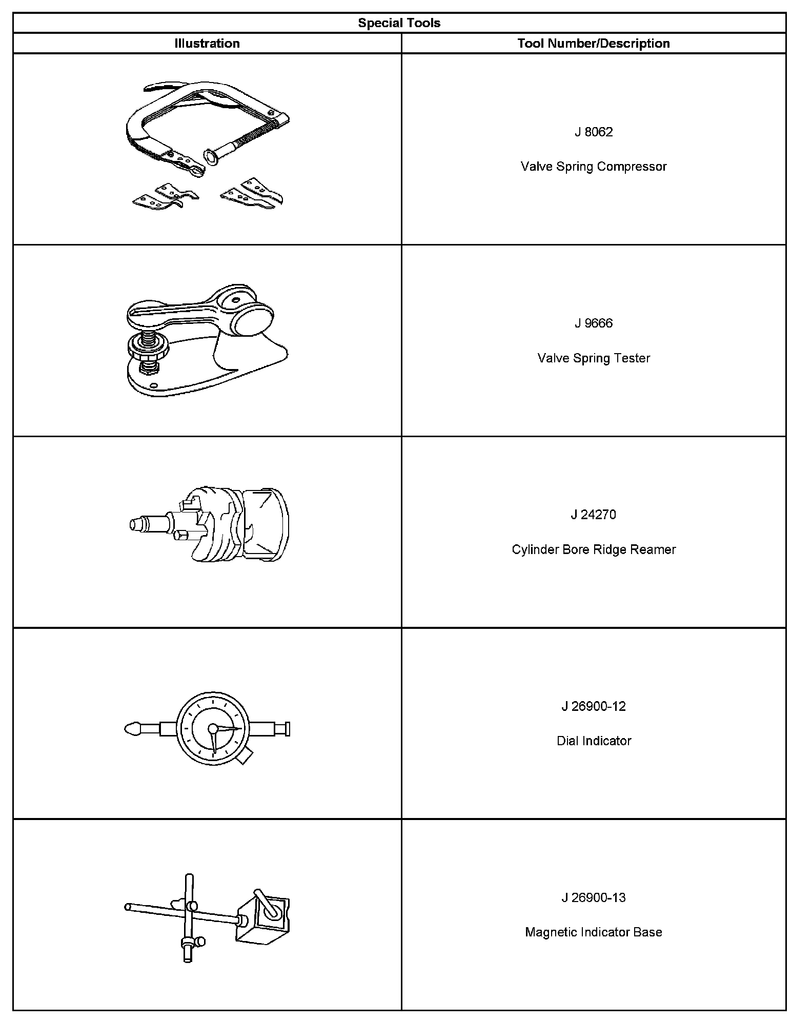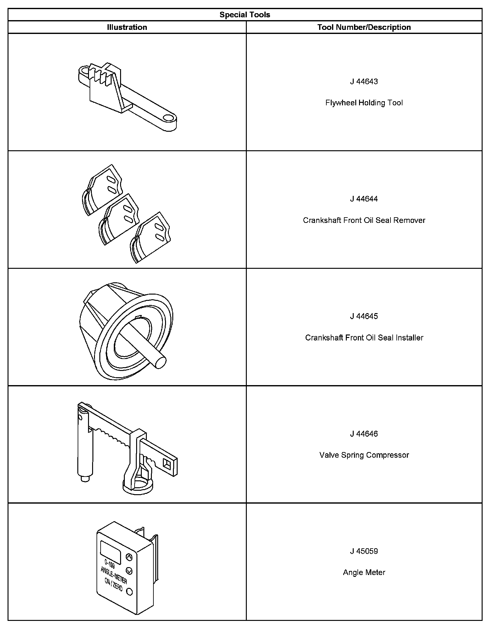 ^ Special tools are listed and illustrated throughout this section with a complete listing at the end of the section. These tools or their equivalents, are specially designed to quickly and safely accomplish the operations for which they are intended. The use of these special tools will also minimize possible damage to engine components. Some precision measuring tools are required for inspection of certain critical components. Torque wrenches and a torque angle meter are necessary for the proper tightening of various fasteners.