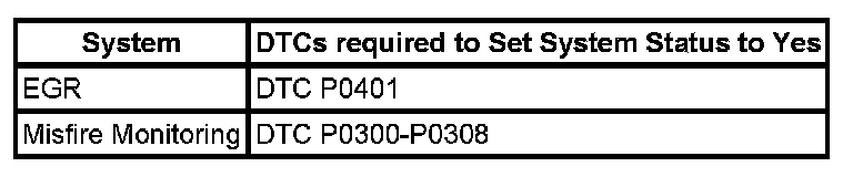 INSPECTION/MAINTENANCE (I/M) SYSTEM DTC TABLE