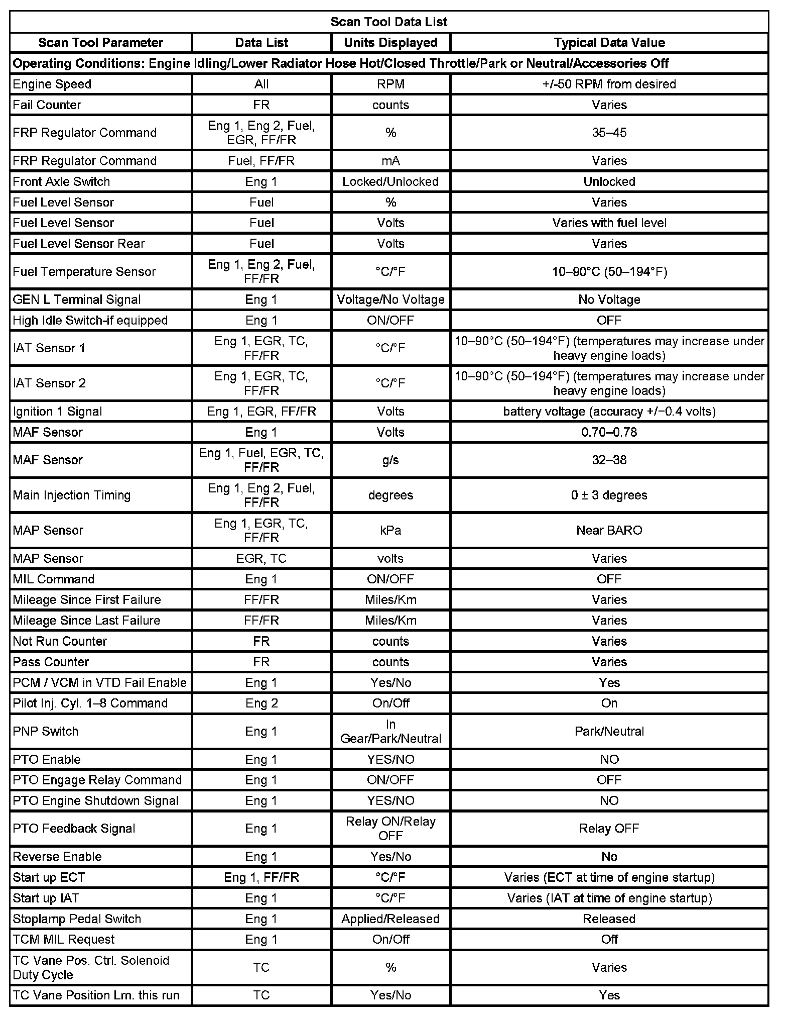 Scan tool values from a properly running engine may be used for comparison with the engine you are diagnosing. The Engine Control Module Scan Tool Data List represents values that would be seen on a normal running engine.