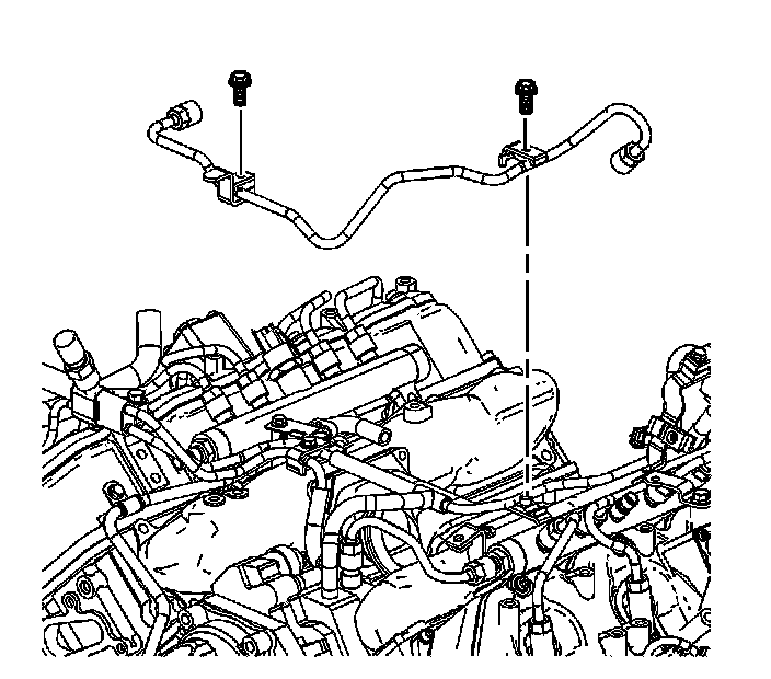 18. Spray lithium grease, GM P/N 12346293 or equivalent, between the fuel injector line and fittings to assist in containing any debris during removal.