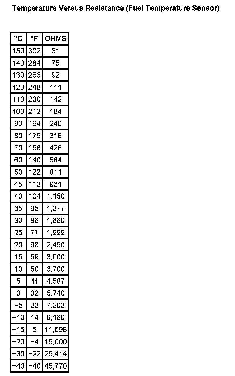 Temperature Versus Resistance (Fuel Temperature Sensor):