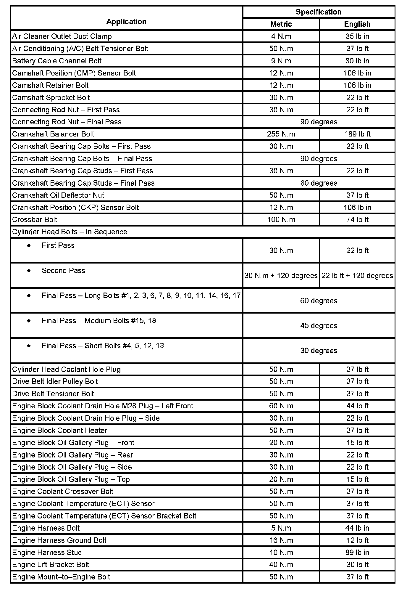 Fastener Tightening Specifications