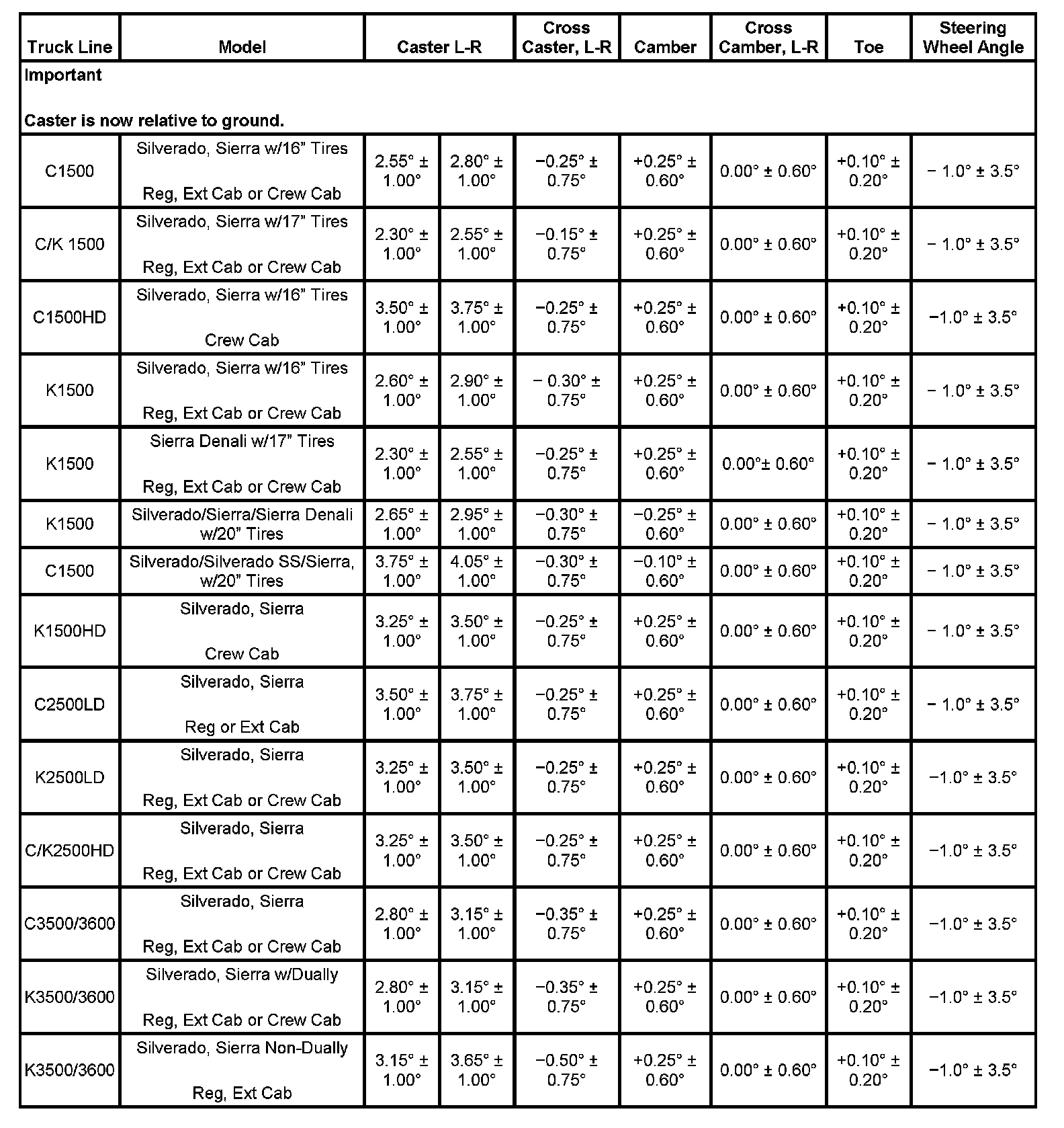Wheel Alignment Specifications