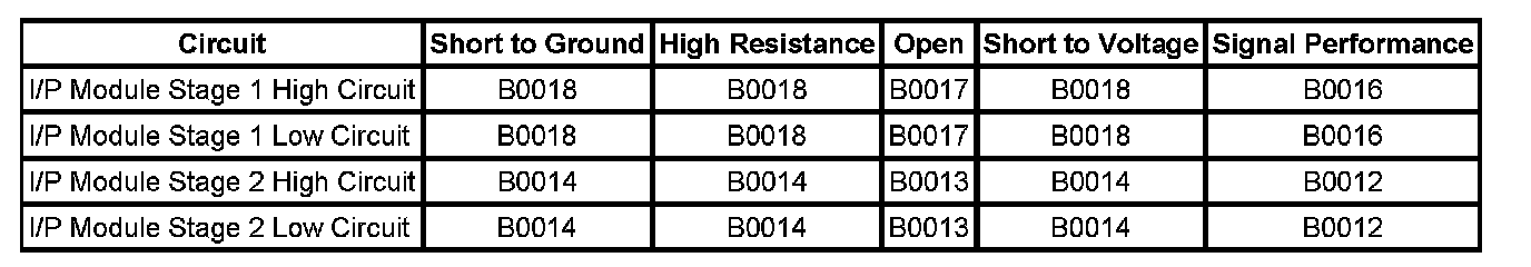 * A short between the I/P module stage 1 or stage 2, high and low circuits