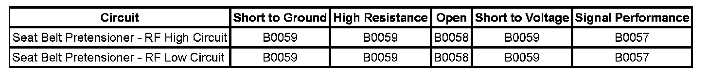 * A short to ground or a short to voltage in the seat belt pretensioner - RF high or low circuits