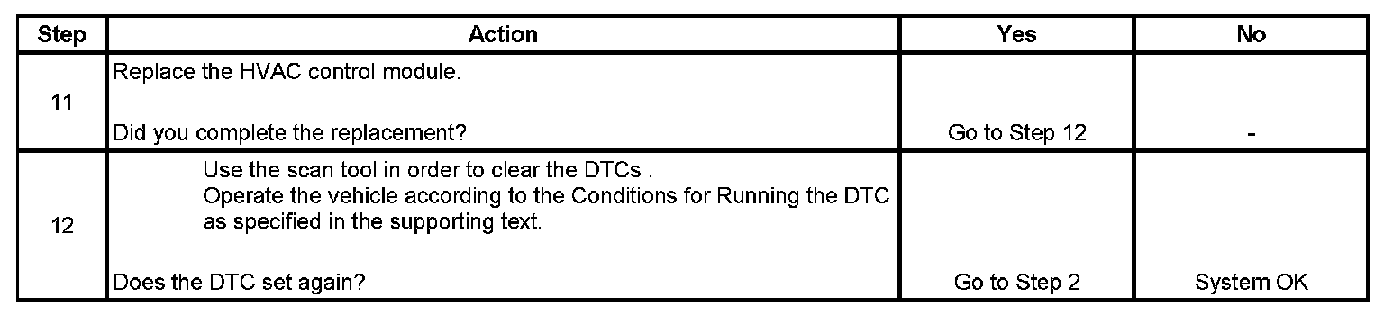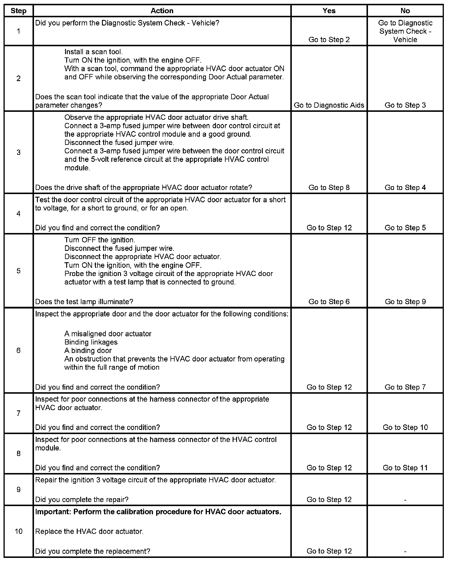 * If the scan tool indicates that the Door Actual parameter is 5-10 counts from the Commanded Door parameter, then perform the recalibration procedure for the HVAC door actuators. Refer to Actuators Recalibration (Primary). Programming and Relearning