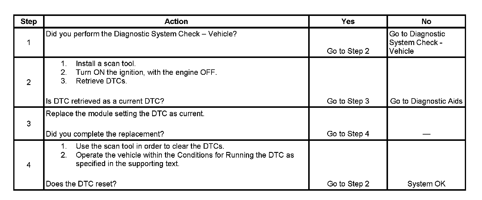 - If this DTC is retrieved as both a current and history DTC, replace the module.