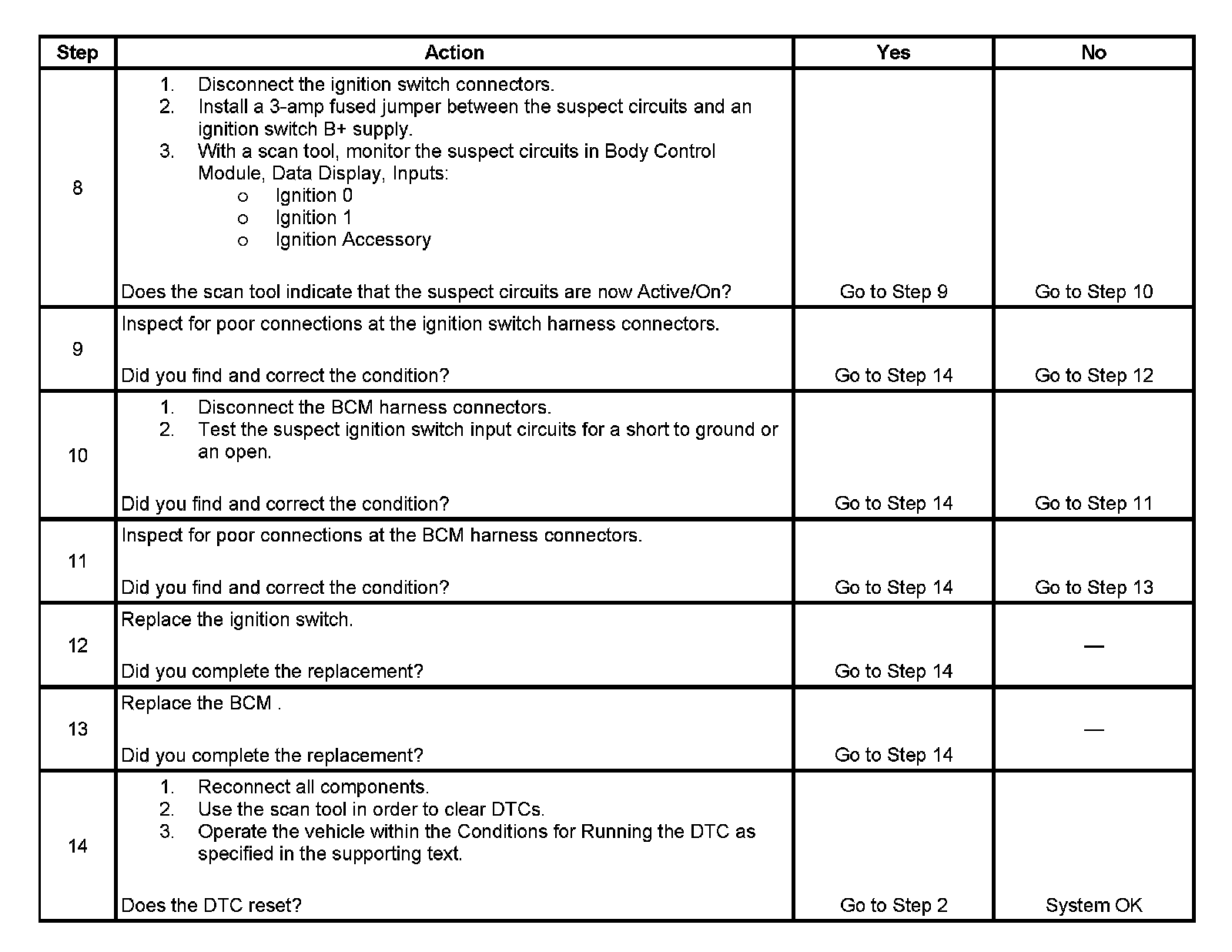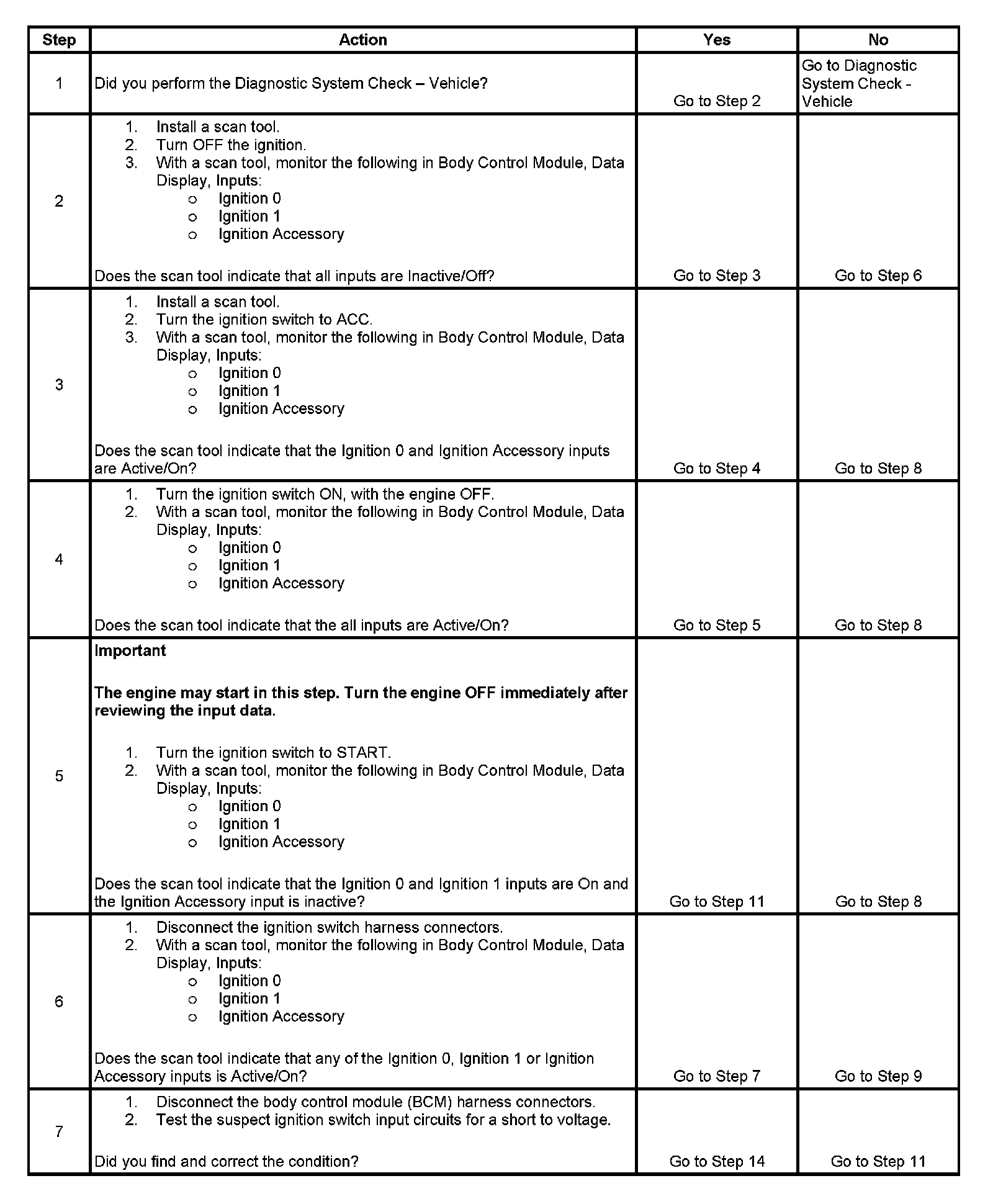 Incorrect Ignition Switch Inputs: