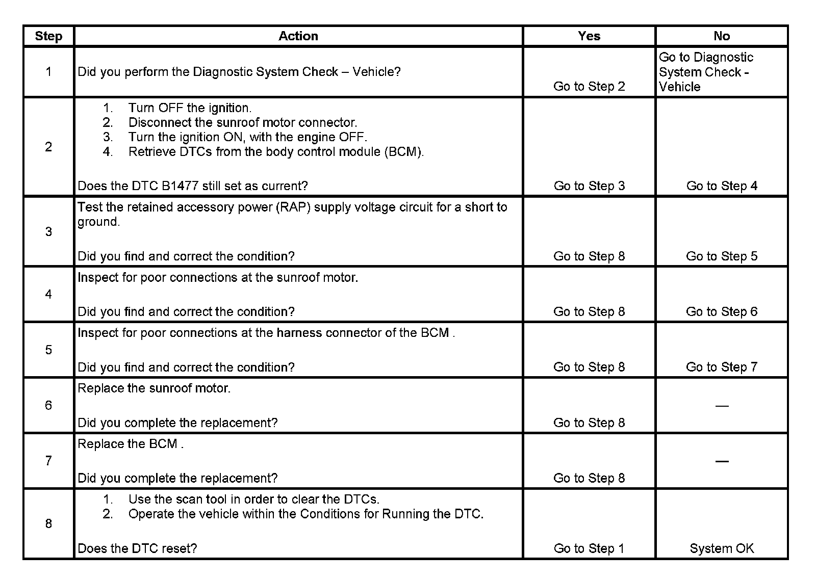 - The BCM stores DTC B1477 in memory.