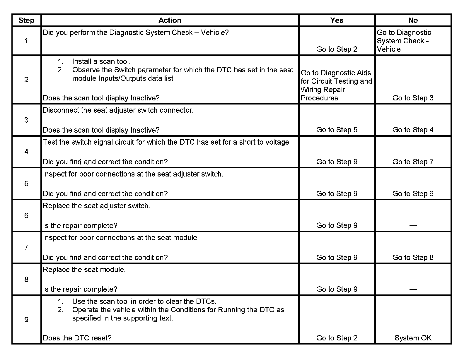 The seat module will disable the seat adjuster function for which the DTC has set.
