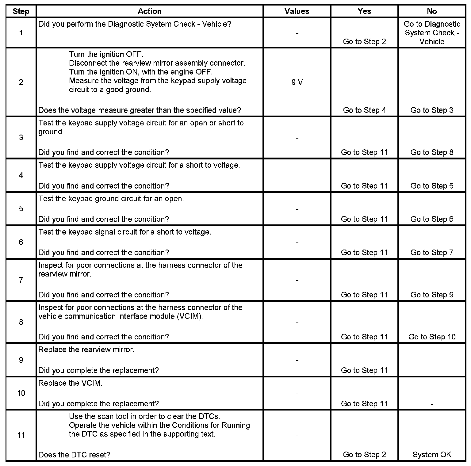 * The VCIM powers the button assembly through the keypad supply voltage circuit for 11.5 milliseconds, turns the power off, then waits for 50 milliseconds and sees a voltage value less than 1.8 volts on this circuit.