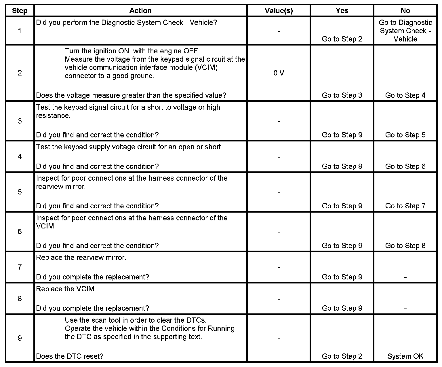 2. This step tests the at rest state of the keypad signal circuit.