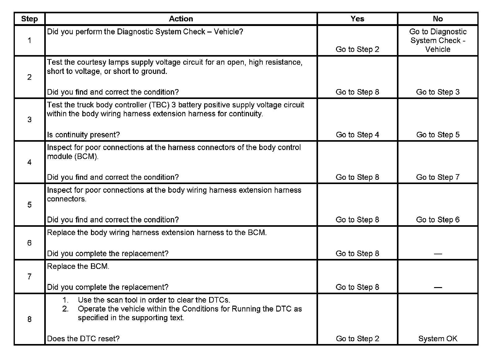 3. This step test determines if an open exists in the body wiring harness extension harness.