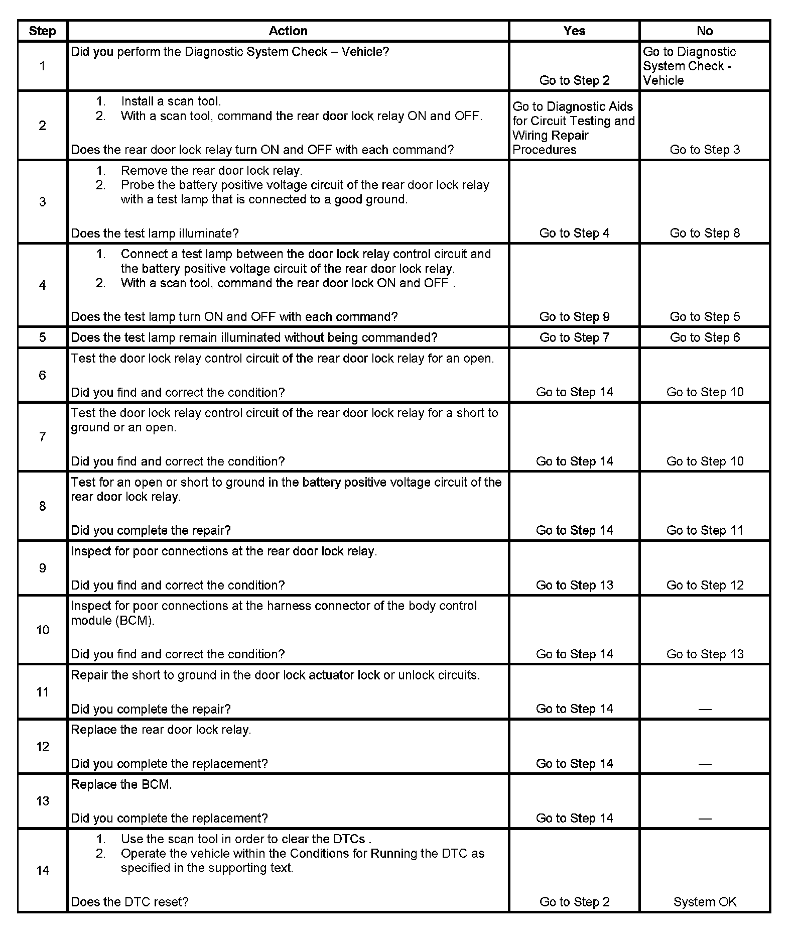 5. This step tests if ground is constantly being applied to the rear door lock relay.