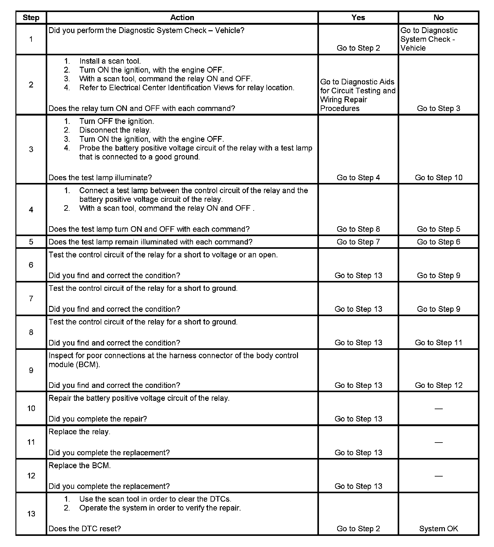 4. This step tests the ability of the BCM to energize the relay.
