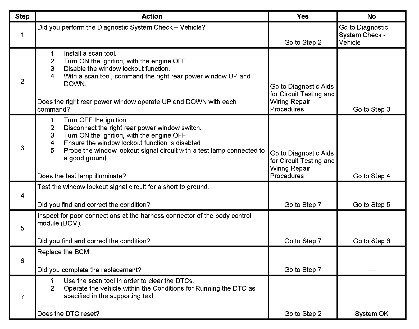 - The window lockout function is disabled and the window lockout signal circuit is shorted to ground.
