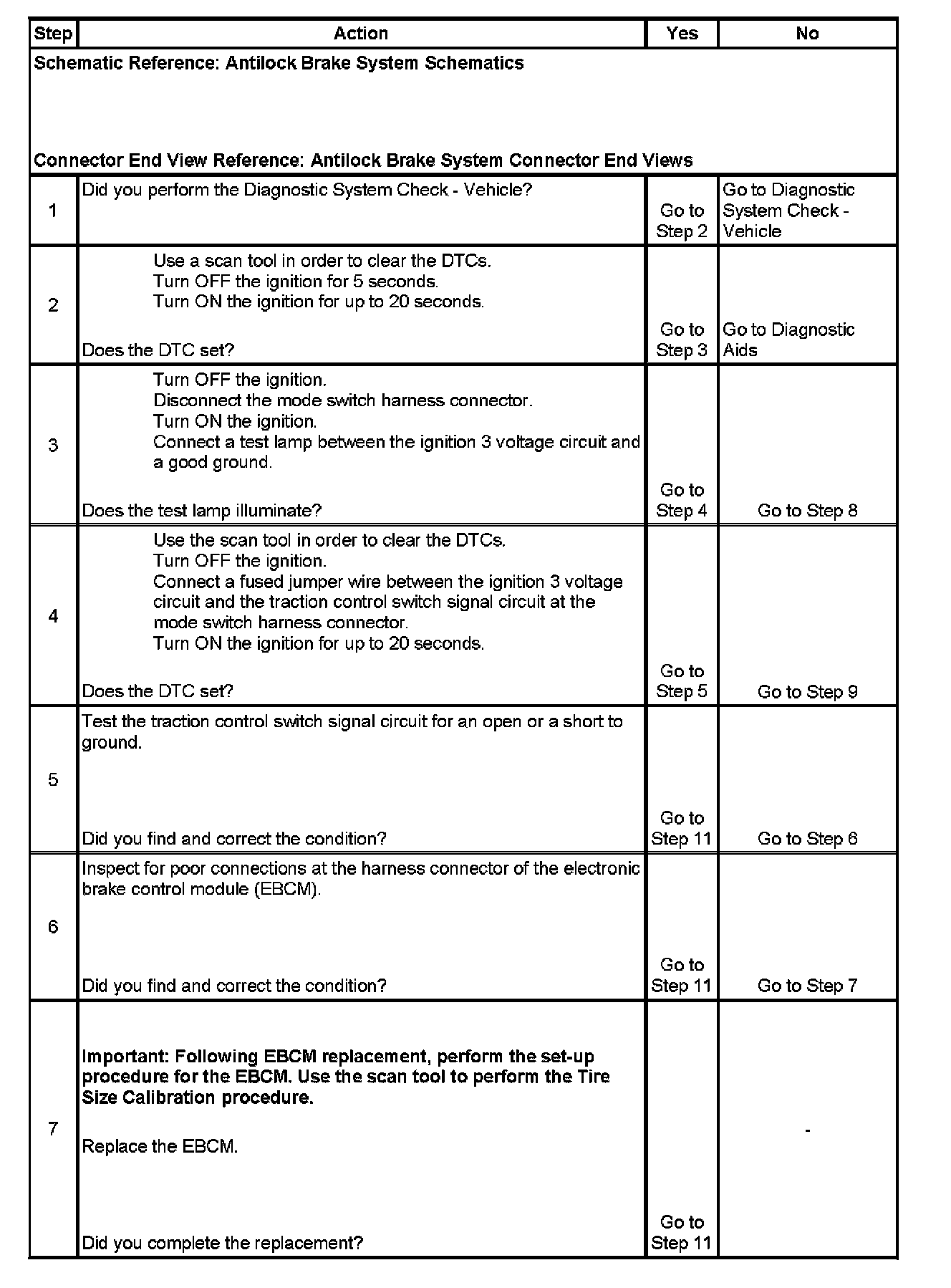 The EBCM detects low voltage on the traction control switch signal circuit for 8 seconds.