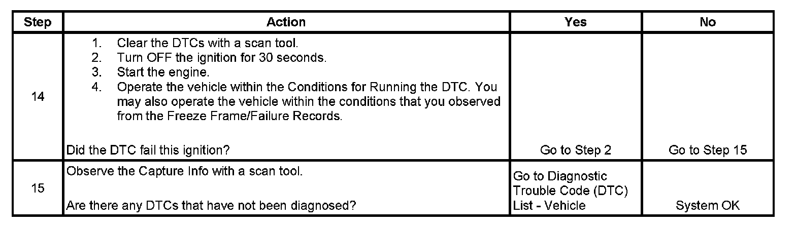 * A current DTC, Last Test Failed, clears when the diagnostic runs and passes.