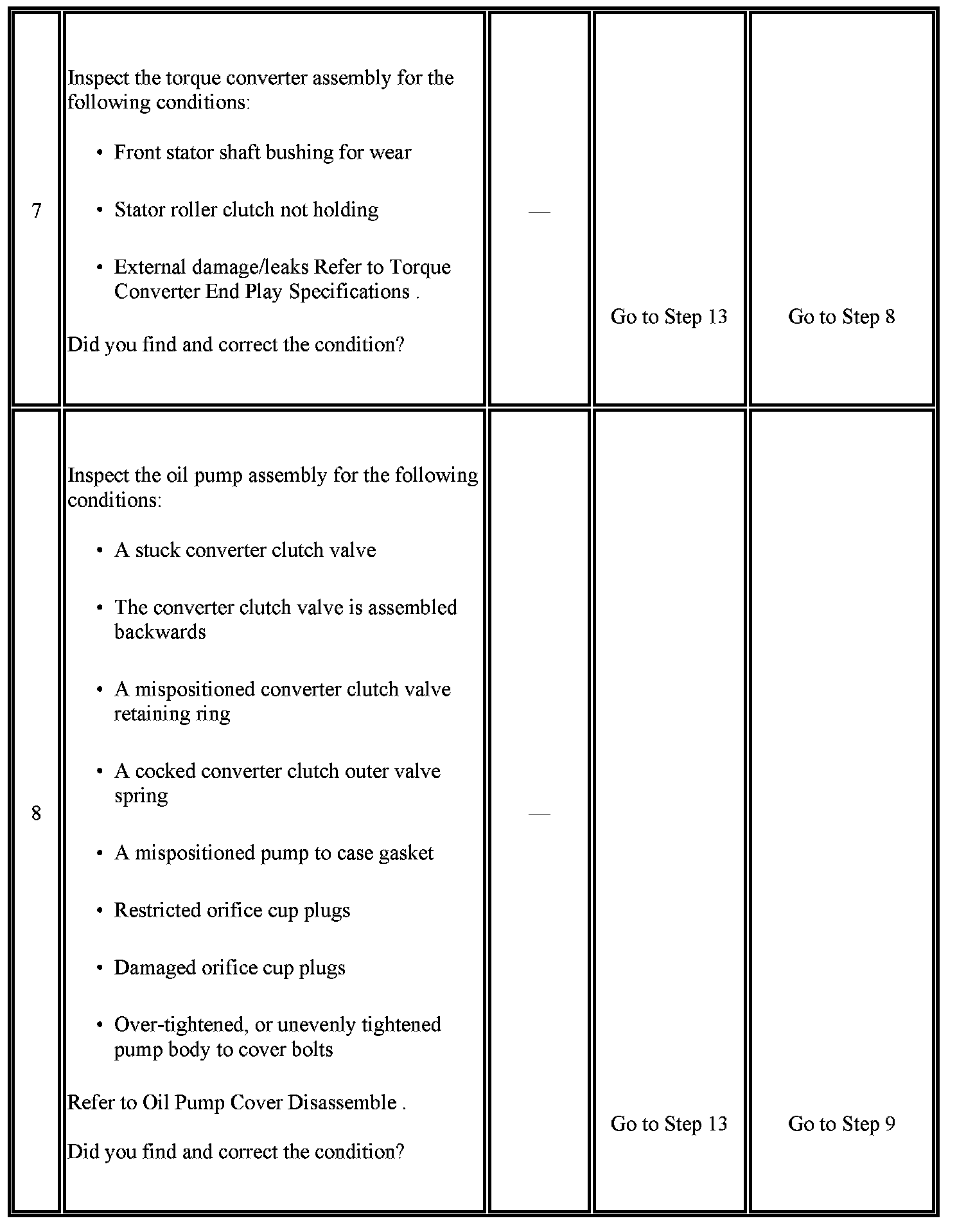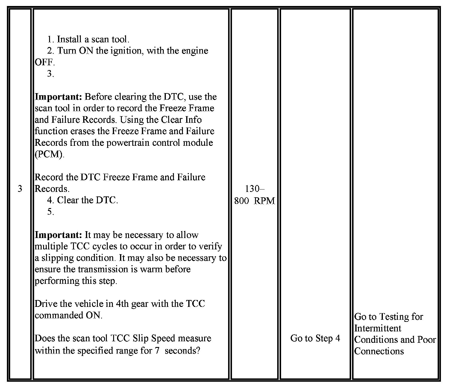If Condition 1 is met and the TCC slip speed is 130-800 RPM for 7 seconds, then the PCM will command the TCC Off for 1.5 seconds.