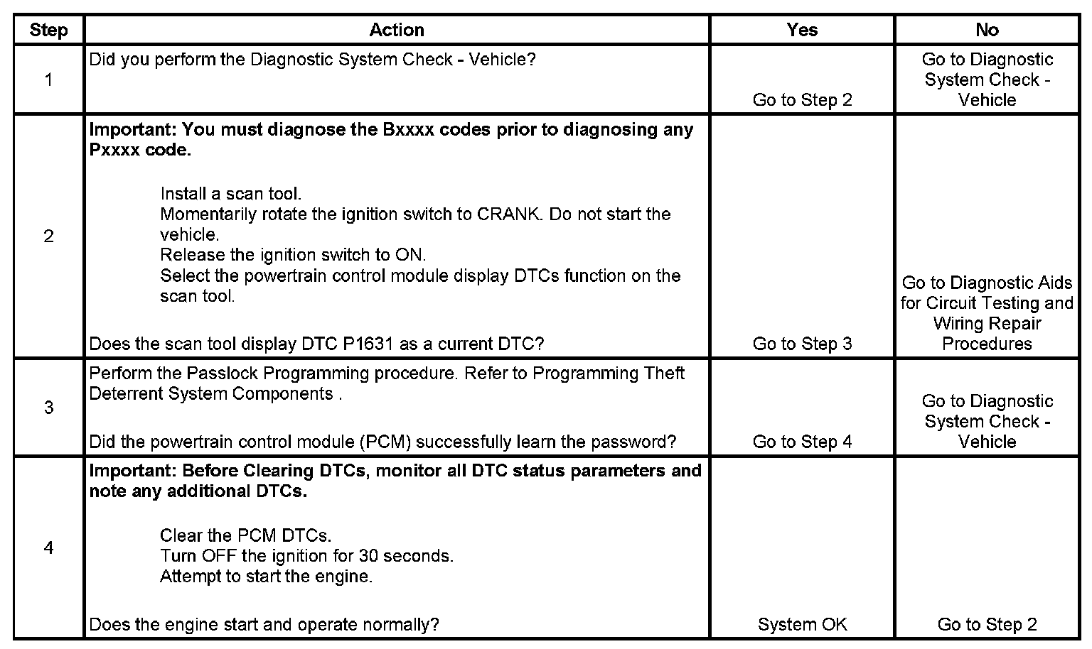 - If a fault or tamper has been detected, the BCM will not forward the correct password to the PCM for a period of 10 minutes, even if the condition is corrected during that time period. This may cause a DTC P1631 to set in the PCM. This timer can be monitored in the Passlock Data parameter of the scan tool. Once the time has elapsed, the BCM will determine if the condition is still present.