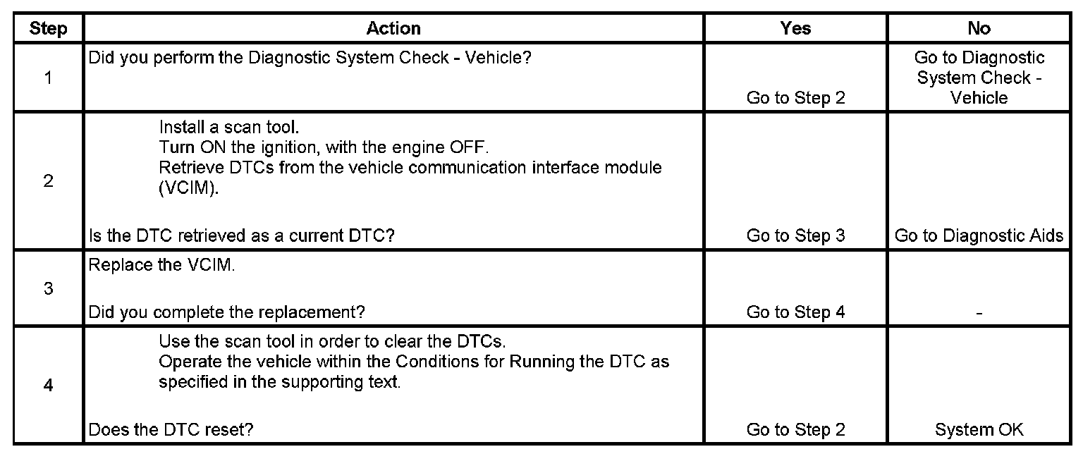* If this DTC is retrieved as both a current and history DTC, replace the VCIM.