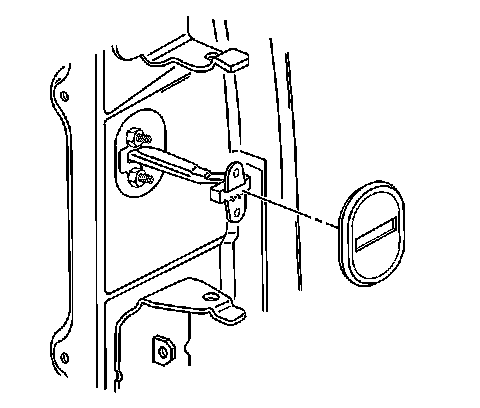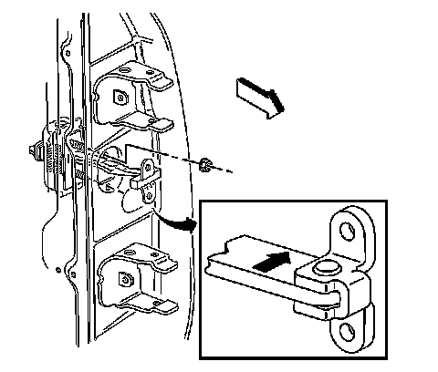 1. Install the check link assembly through the door access hole. Ensure that the position arrow is pointing forward.