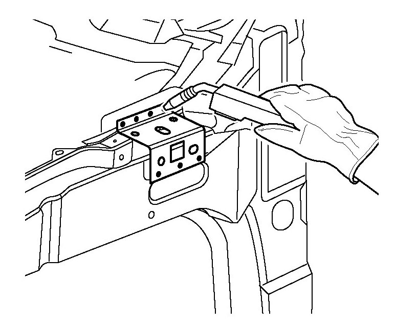 1. Drill 8 mm (5/16 in.) plug weld holes in the service part as necessary in the locations noted from the original part.