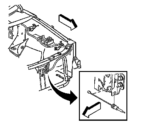 5. Release the hood latch release cable from the hood latch assembly.