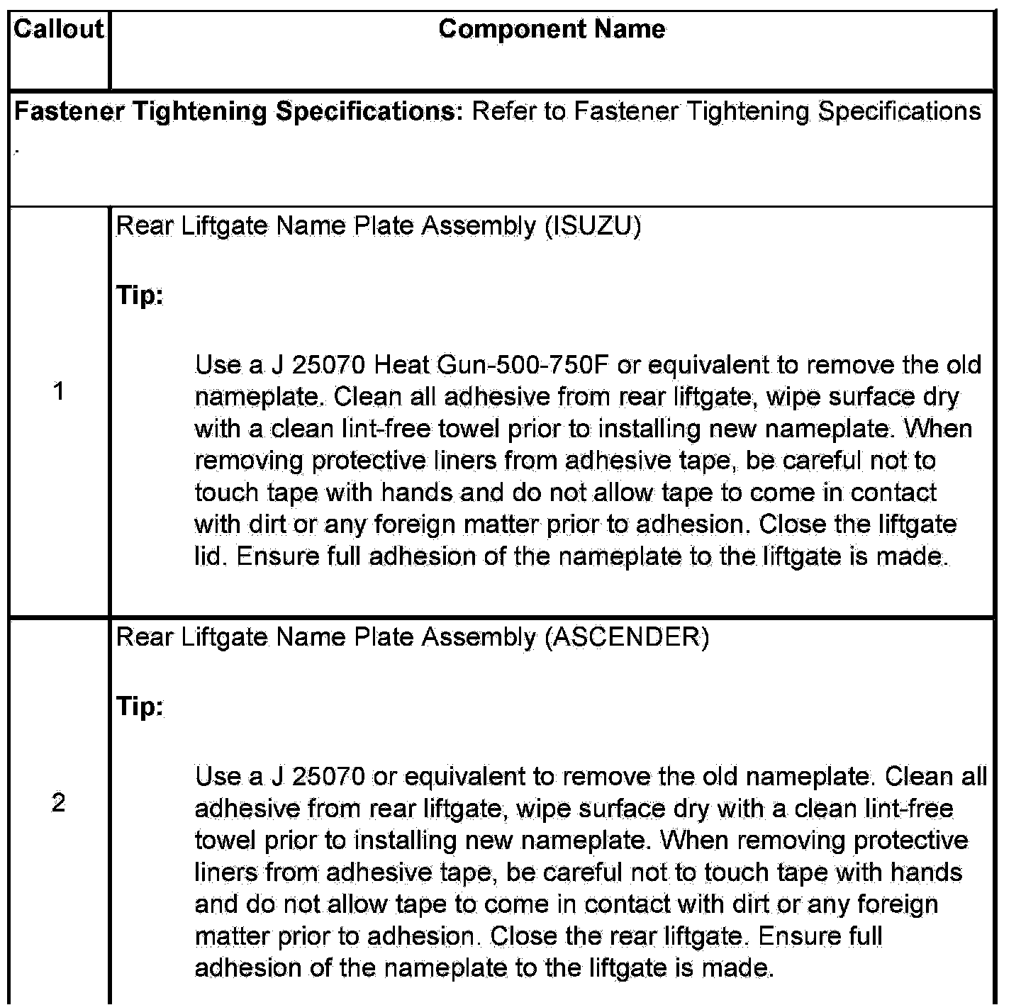 Liftgate Emblem/Nameplate Replacement (Isuzu)